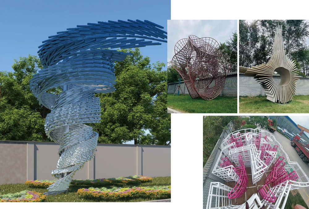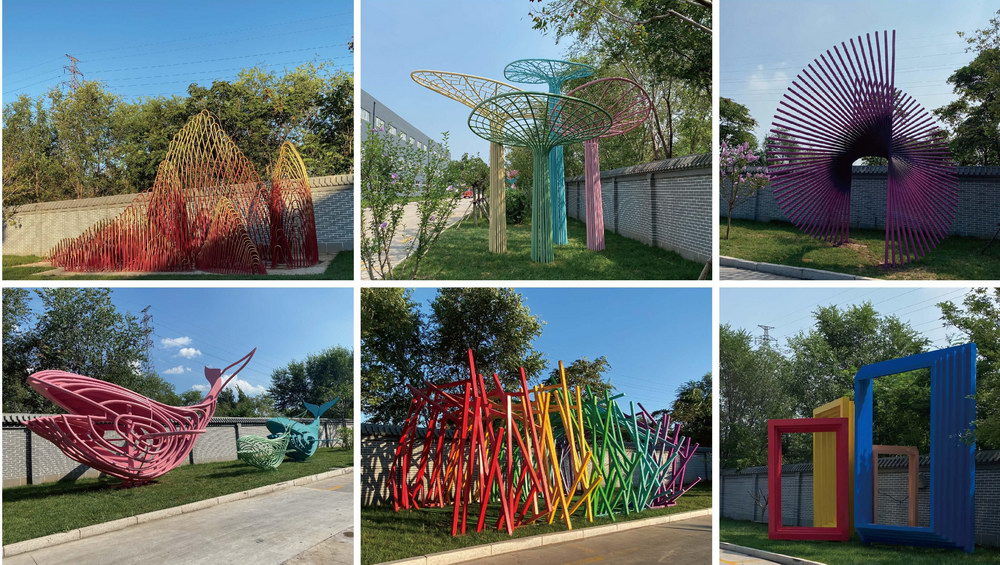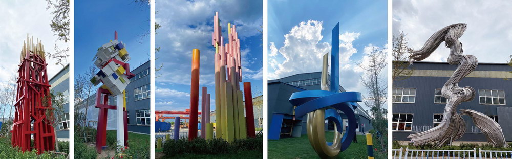 天津友發集團-鋼管藝術長廊群雕塑《綠水青山》《蒸蒸日上》《鋼管旋律》《魚之樂》《時光隧道》《任意門》